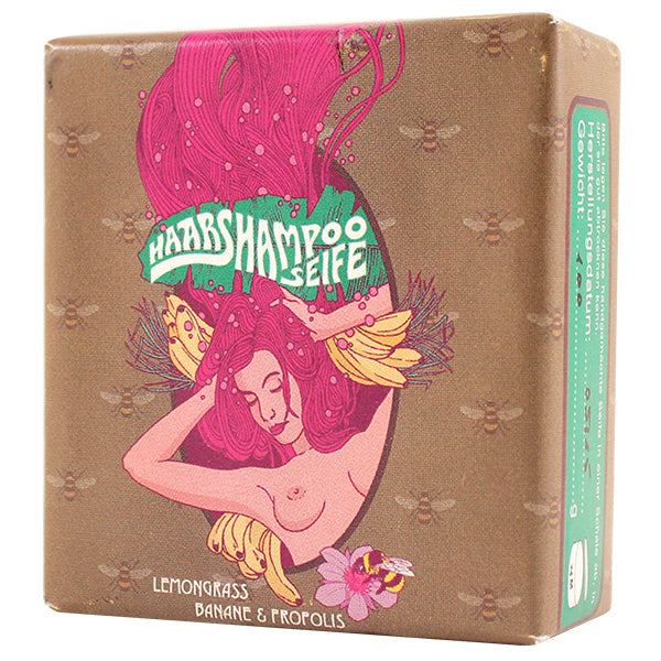Lemongrass & Banana Shampoo Bar is formulated to cleanse and nourish the hair with banana, lemongrass and propolis. Scented with essential lemongrass oil. This soap was specially developed for washing hair although it is suitable for cleansing the entire body. For hard water, a final hair rinse with a light vinegar solution (e.g. 1 tablespoon of apple cider vinegar in 2 liters of water) is recommended.