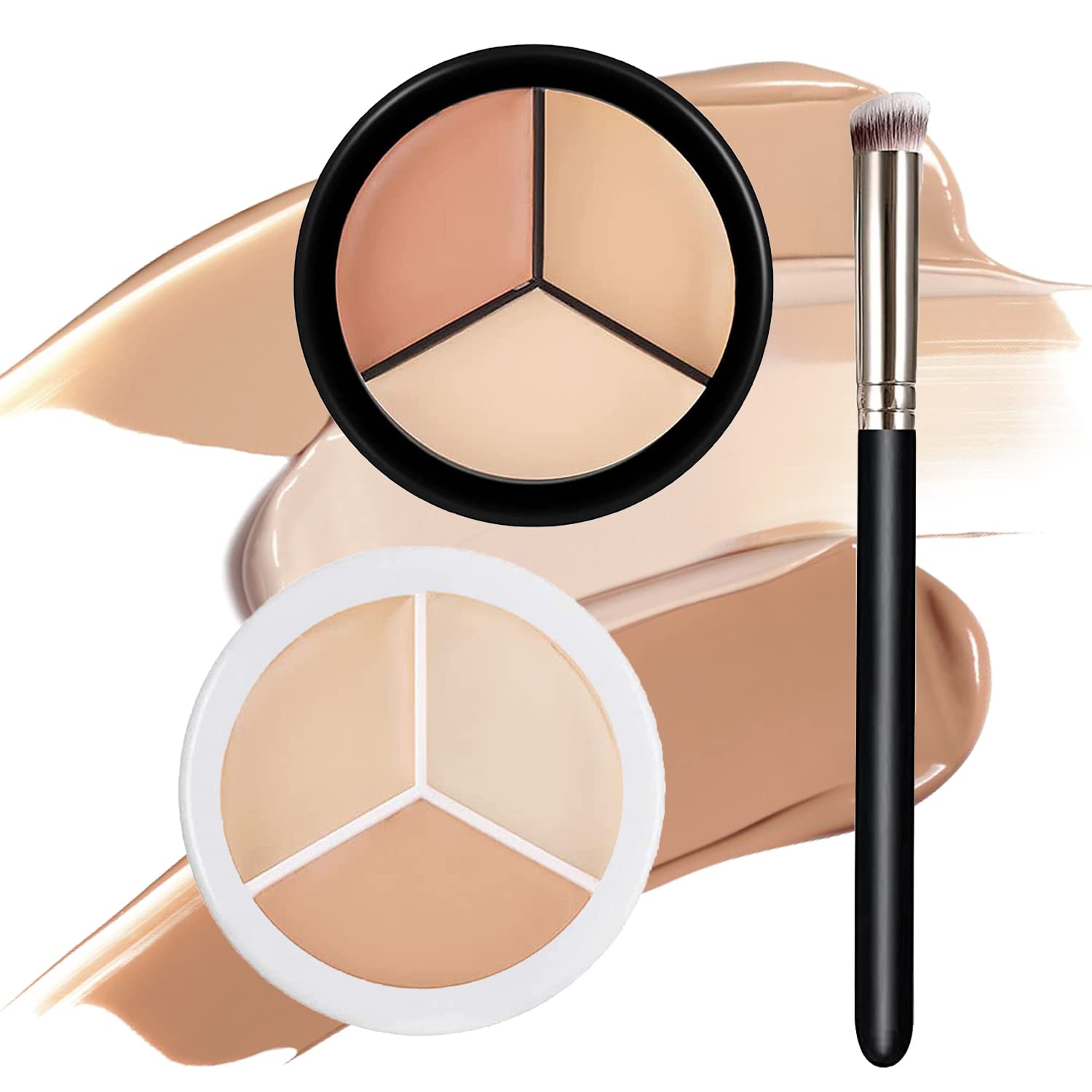 6 Colors Concealer,Black & White 3 In 1 Color Contouring Palette With Brush,for Dark Circles, Freckles, Blemishes Cream Concealer,Waterproof&Long-Lasting Beginners&Professional Makeup Artist Contour Palette CreamWith Brush