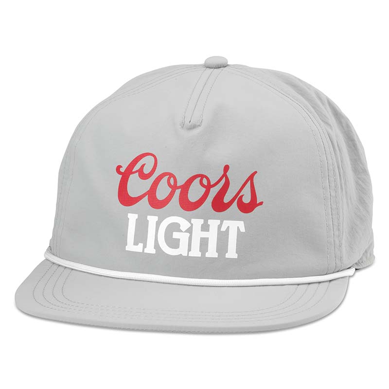 Coors Light Catalina style hat from American Needle. This hat features a paneled design with a rope trim, flat brim, and an adjustable closure at the back.