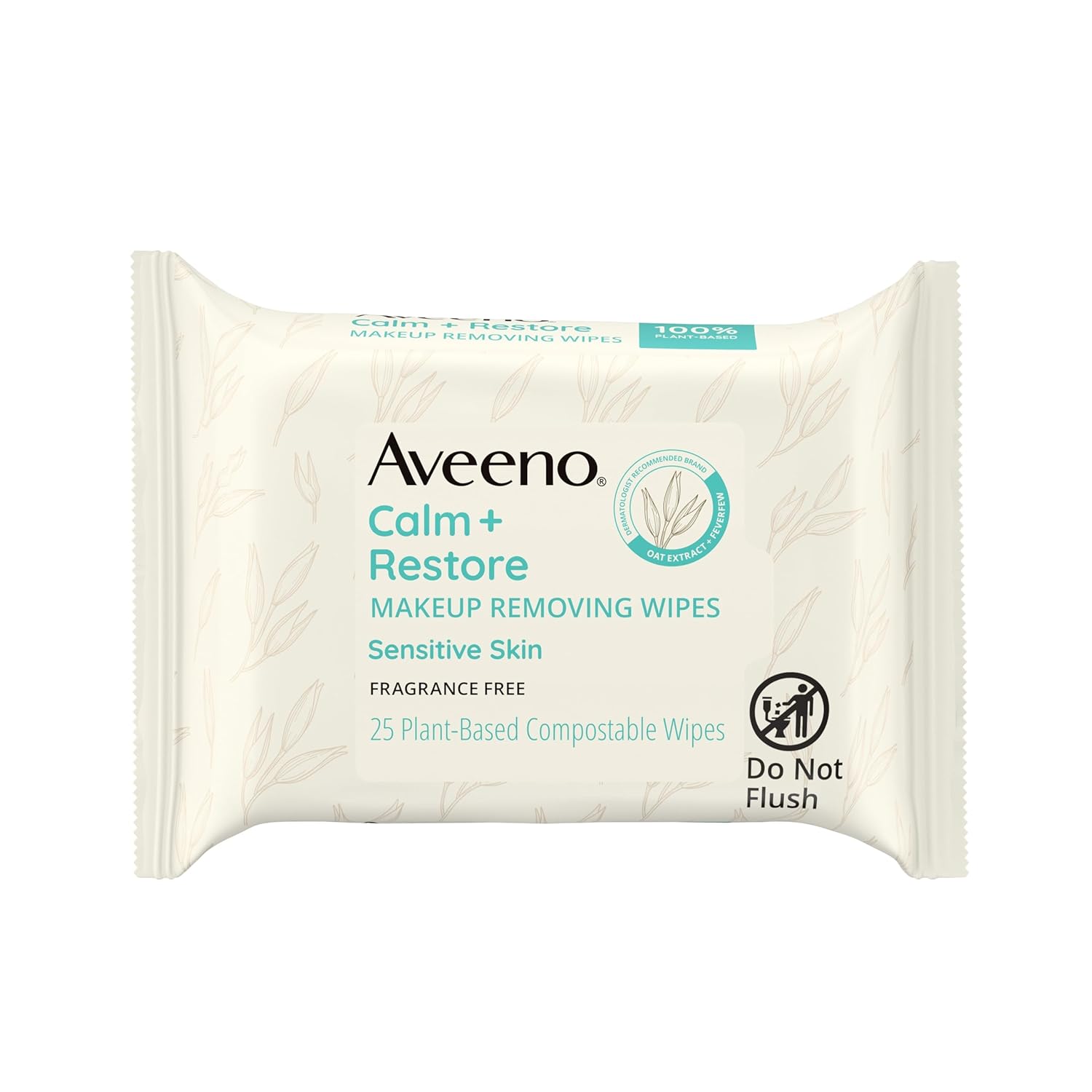 Aveeno Calm + Restore Nourishing Makeup Remover Face Wipes, Fragrance Free Facial Cleansing Towelettes with Oat Extract & Calming Feverfew, Alcohol Free, 100% Plant-Based Cloth, 25 ct