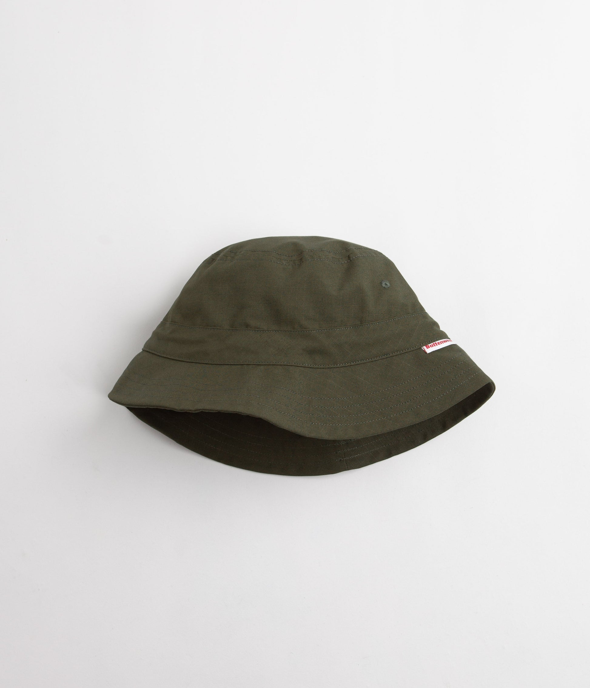 Battenwear Camp Crusher Hat in Olive Drab Ripstop. Redesigned with a 100% cotton ripstop construction, this single sized Battenwear hat is water-repellent and styled with a bendable foam visor. Finished in a shade of olive green with embroidered airflow eyelets, an adjustable toggle-cord fastening and with woven flag label branding.