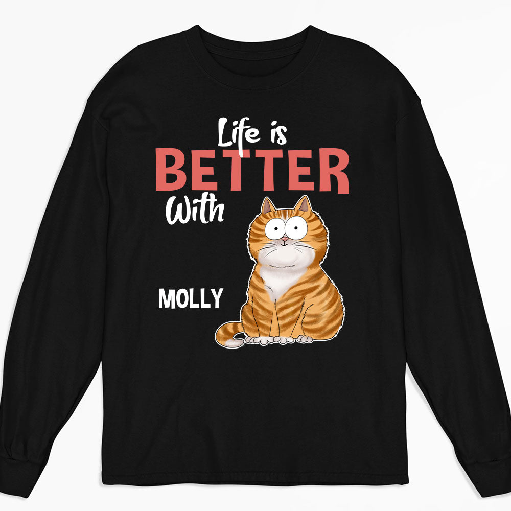 Better Life With Cat - Personalized Custom Long Sleeve T-shirt