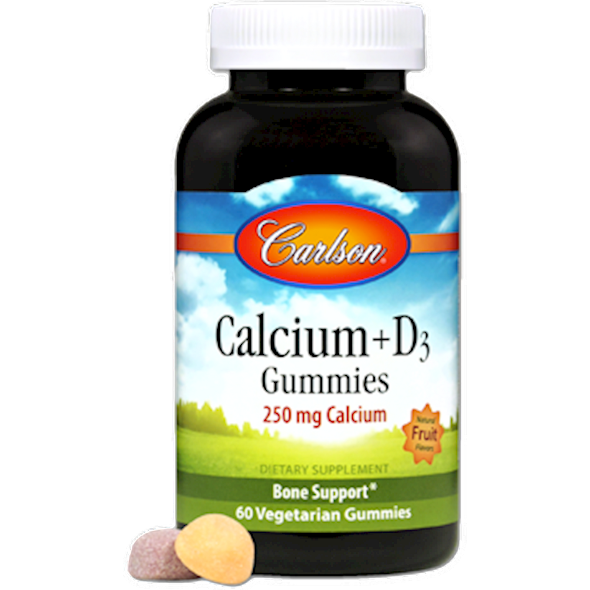 To build strong bones during adolescence and to keep them healthy as we age, it's essential that we get sufficient calcium. Unfortunately, many of us don't receive the recommended amount of calcium from diet alone. Carlson Calcium + D3 Gummies are a delicious way for us to get our calcium every day. Just one cherry, orange, or strawberry gummy provides 250 mg of calcium and 400 IU of vitamin D3, which enhances calcium absorption. Calcium + D3 Gummies are soft and easy to chew, making them an ideal alternative for those who don't like swallowing supplements or who prefer a great tasting vitamin. Ensure your body gets the calcium it requires for optimal health with Carlson Calcium + D3 Gummies. Promotes healthy bones* Provides vitamin D3 for calcium absorption Natural cherry, orange, and strawberry flavors Soft, easy-to-chew gummies Potency and quality guaranteed