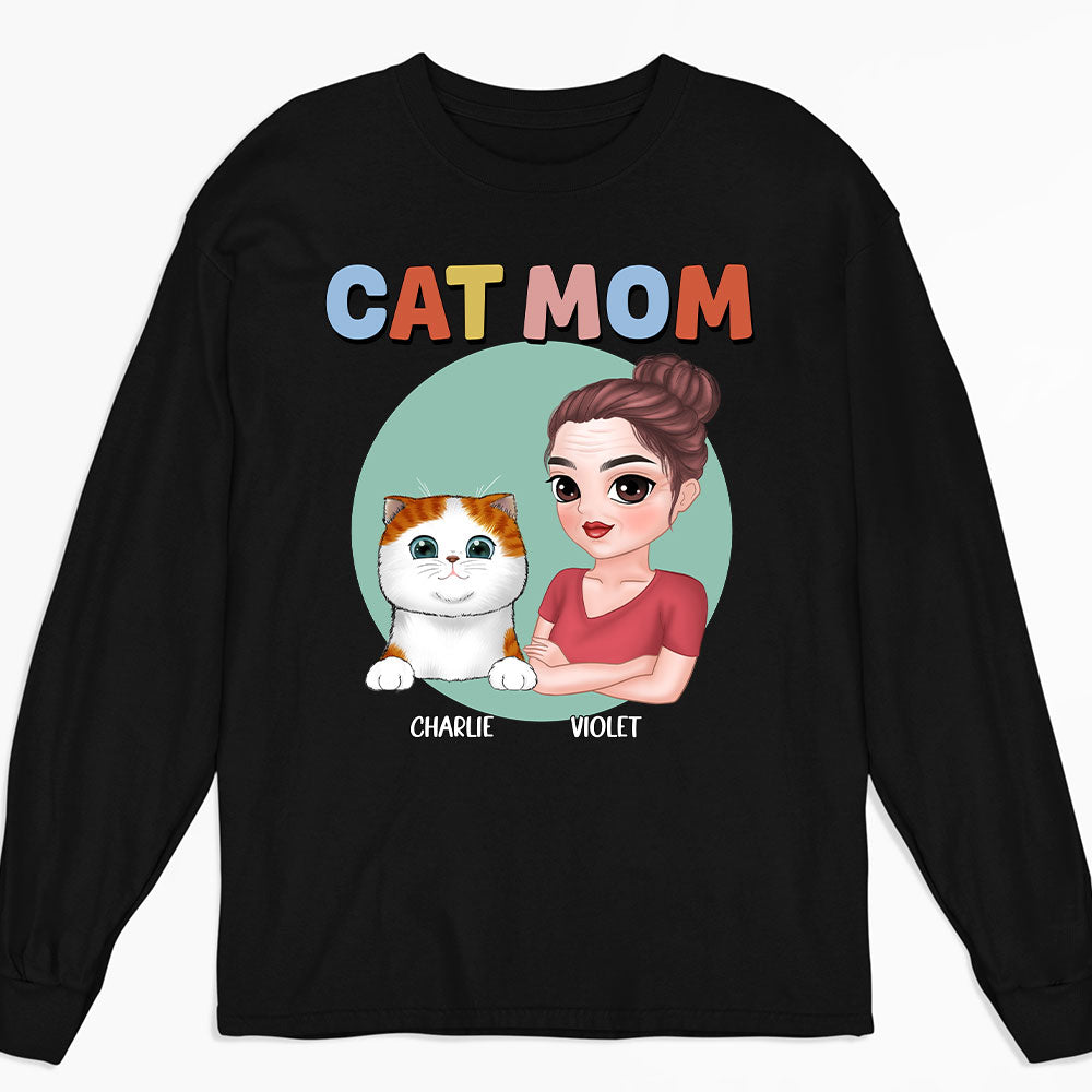 Cat Mom - Personalized Custom Long Sleeve T-shirt