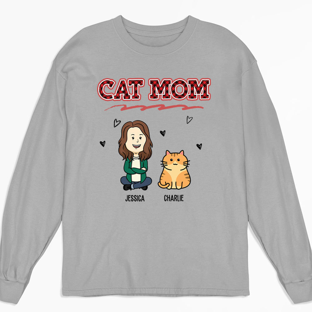 Cat Mom Red - Personalized Custom Long Sleeve T-shirt