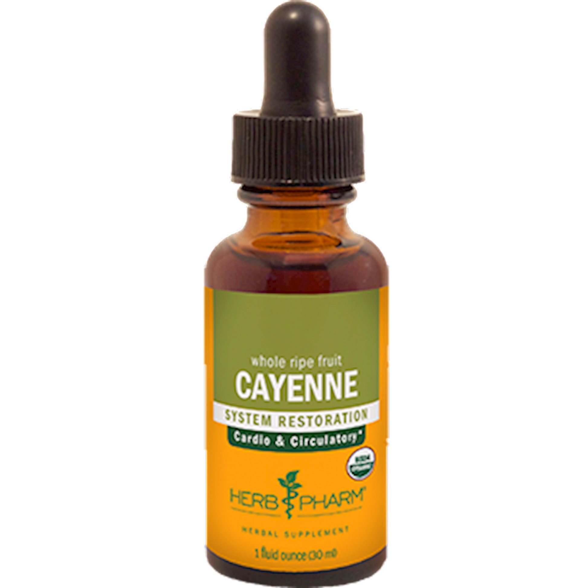 Herb Pharm prepares Cayenne extract from the fruits (peppers) of Certified Organic Capsicum annuum plants rated at 90,000 heat units. Their Cayenne is grown in India during the long, intensely-hot summer. The fruits are harvested only when fully ripened, are carefully shade-dried to retain their full color & aroma, and are then thoroughly extracted. The herb is extracted in small batches with Certified Organic cane alcohol for potency and to maintain the balance of phytochemicals as they exist in the plant. Herb Pharm assures herb identity via macroscopic and organoleptic analysis, then confirms it through methods such as HPTLC fingerprinting specific to each herb. The formula is easily dispensed, taken in liquid form and added to water or other liquid.