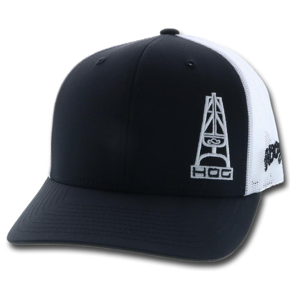 - Black w/ white mesh, white embroidered logo, black side Hooey logo