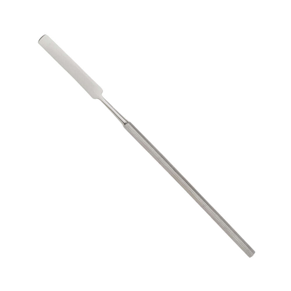 Use this Stainless Steel Spatula to mix makeup on a palette, or apply Ben Nye Nose & Scar Wax, Thick Blood, or Gel Effects. Semi-rigid blade. Wipe clean with alcohol. 177mm / 7” (54mm / 2.125” Blade).