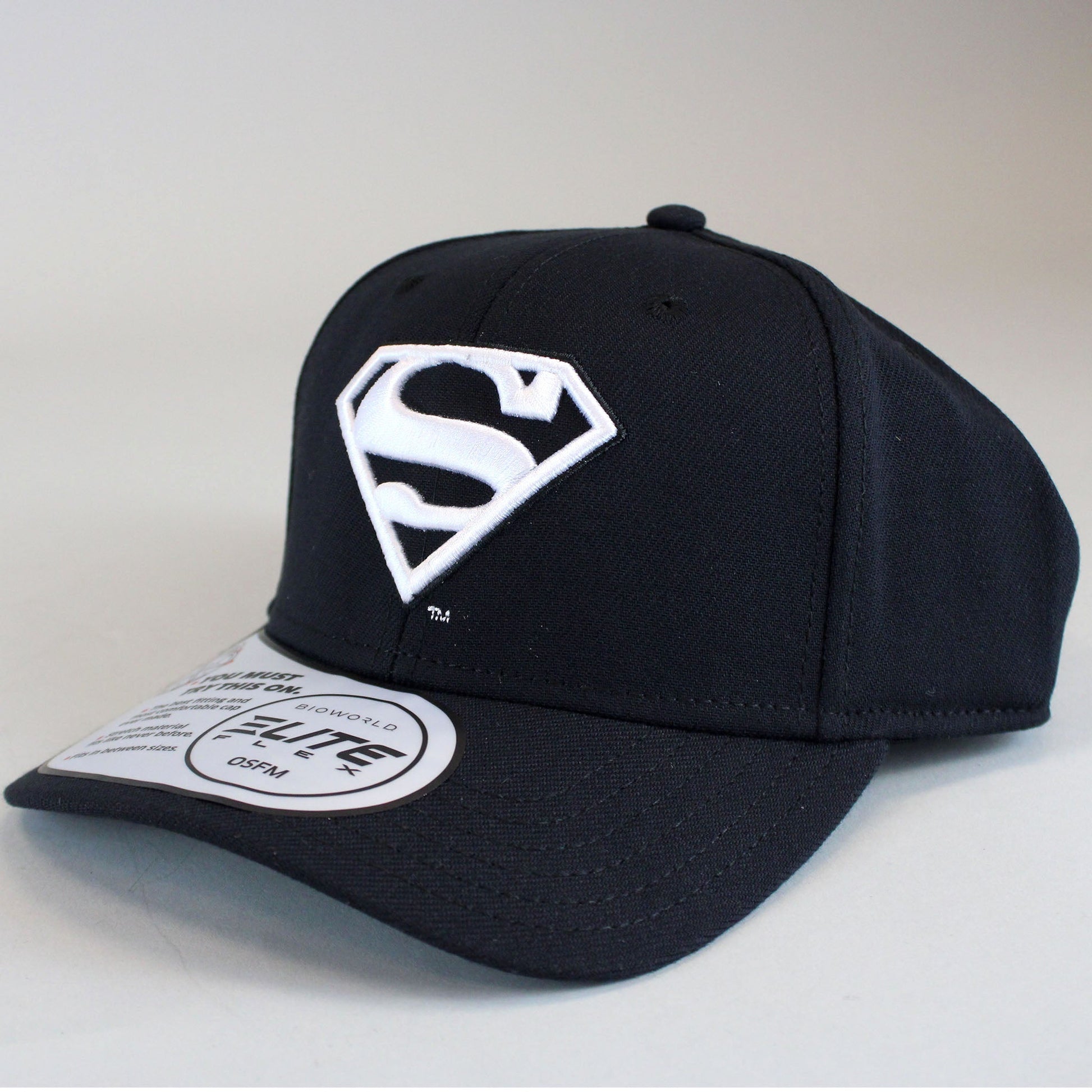Look for a phone booth to jump into with this fun Superman hat! Inspired by DC Comics' Superman series, this officially licensed hat is embroidered with a black-and-white version of the classic "S" logo worn by Clark Kent in his guise as Superman. Flip the hat over to reveal the hidden MAN OF STEEL text underbill art.
