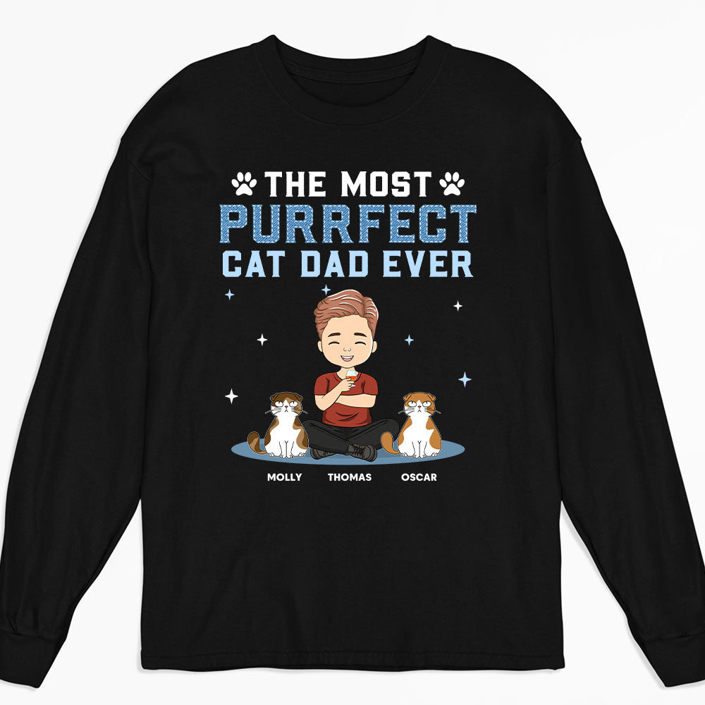 The Most Purrfect Cat Dad Ever - Personalized Custom Long Sleeve T-shirt