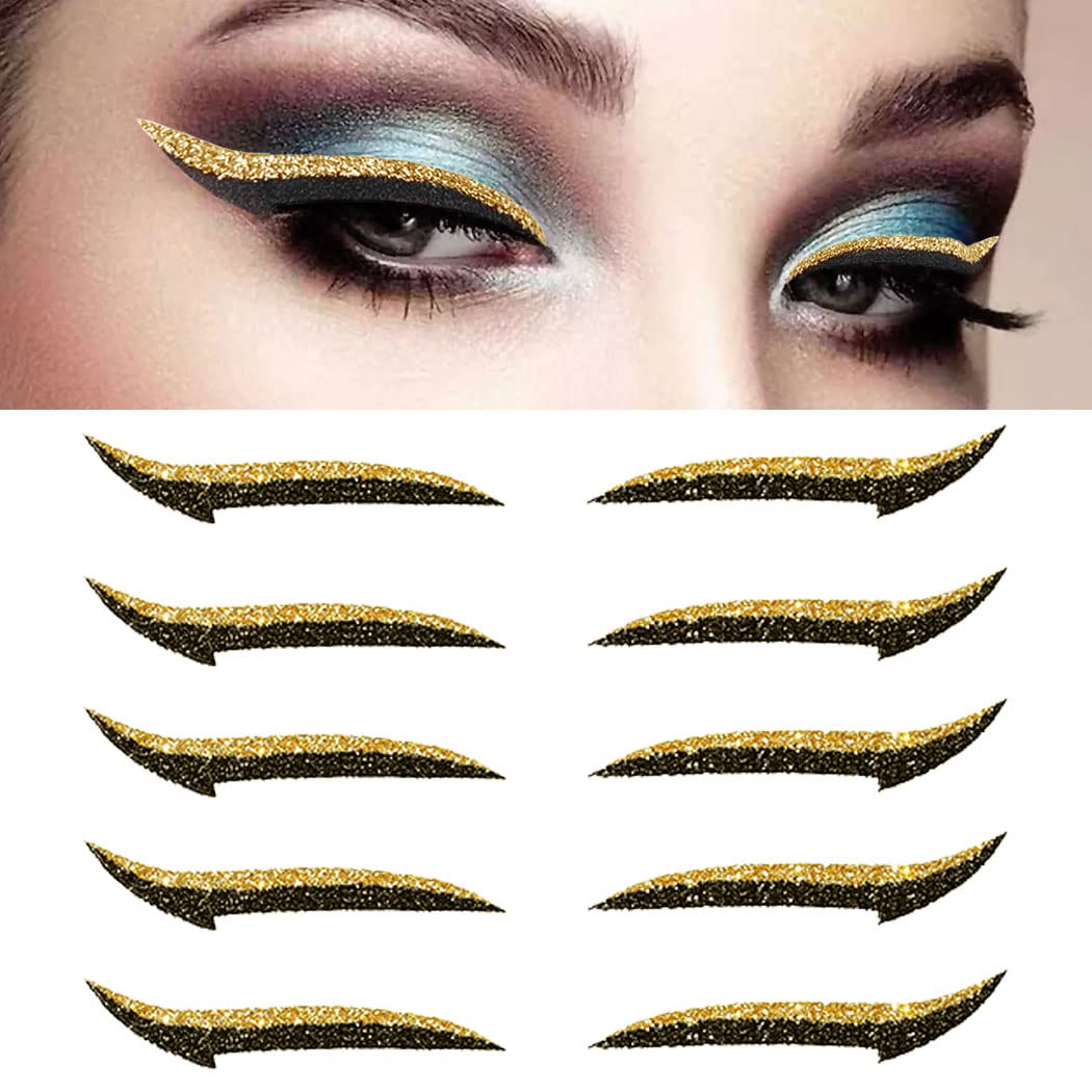 Uranian Eyeliner Stickers Glitter Eyeliner Stickers Instant Adhesive Eye Line Strip Reusable Eyeshadow Stickers Colorful Eyelid Tape for Party Eye Makeup Tool for Women and Girls (Gold)