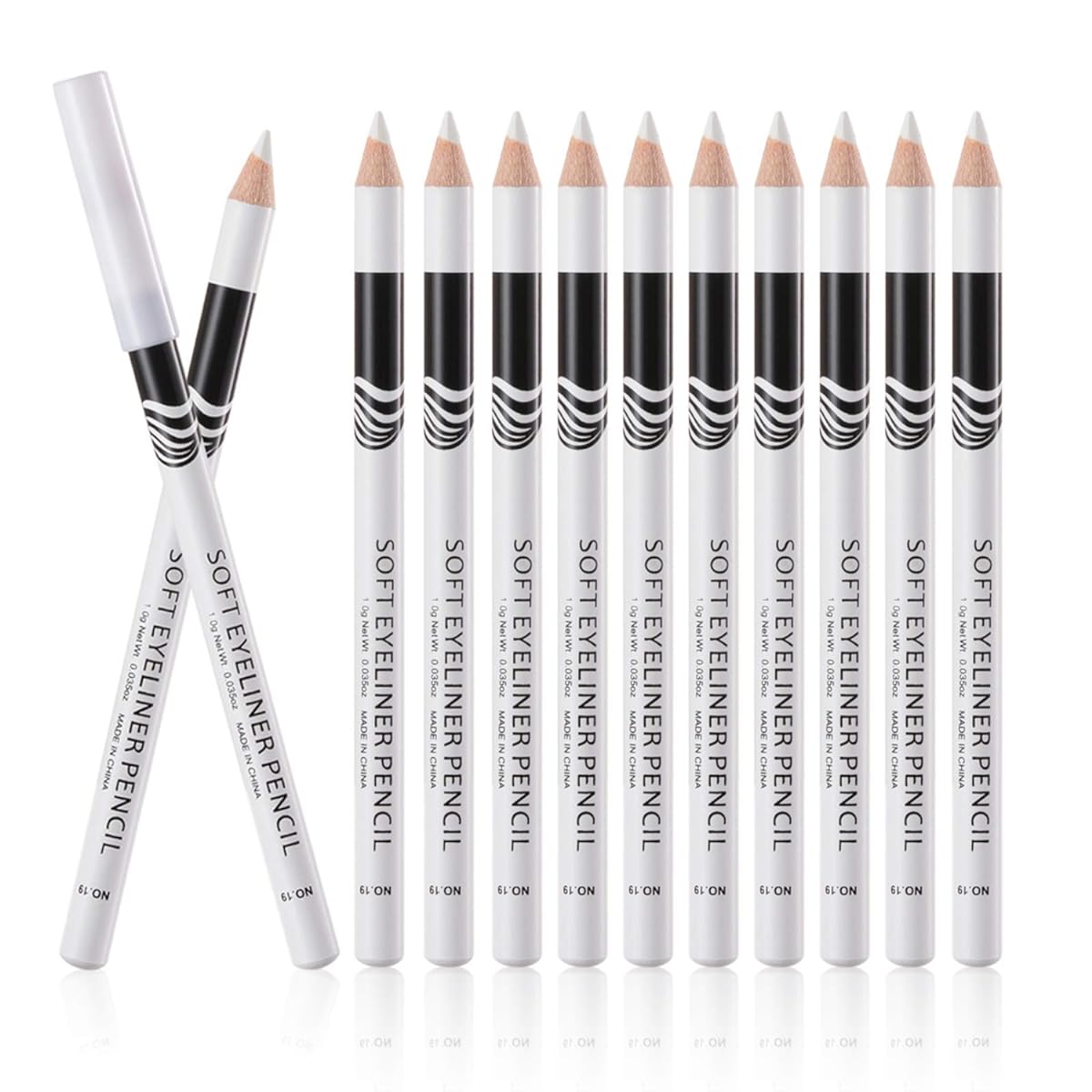 White Eyeliner Pencils Professional Use as Highlighter, Soft, Waterproof, Long-Lasting Eyeshadow, Eye Brightener, Beauty Makeup Tools (12pcs)