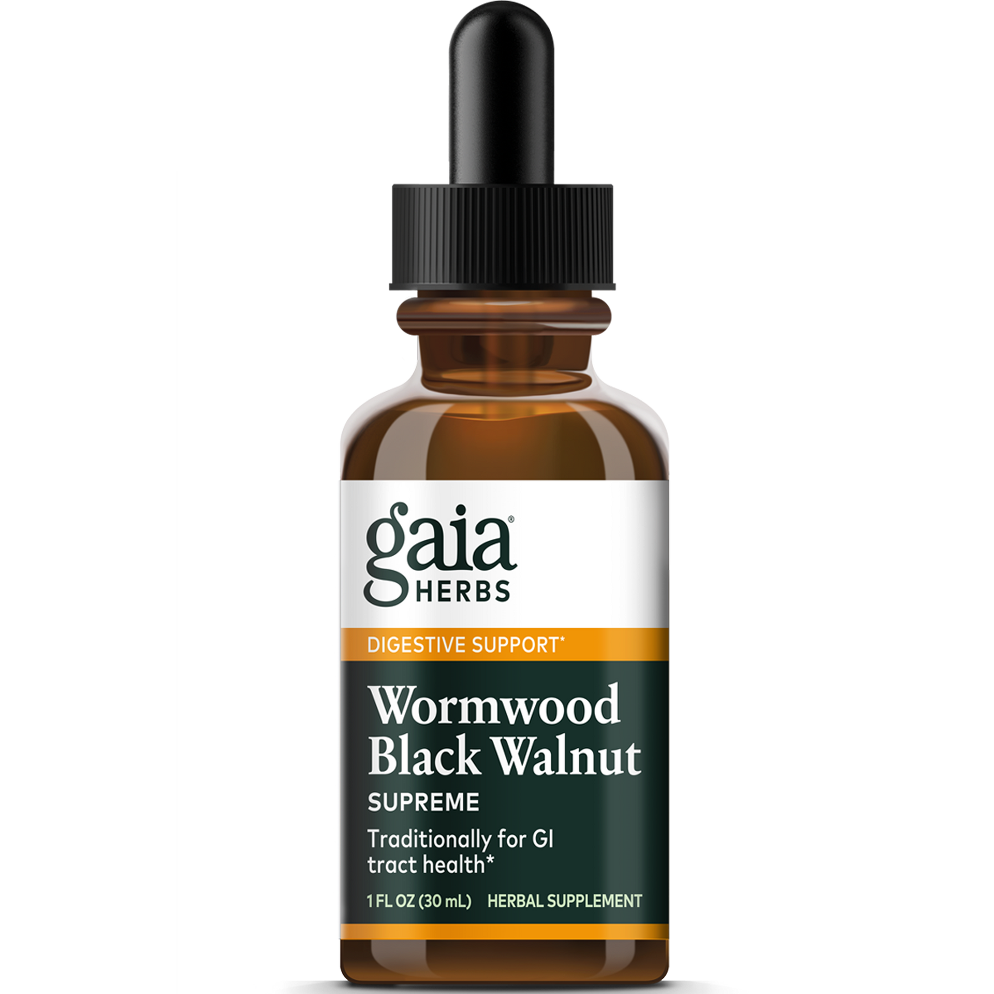 In Traditional Chinese Medicine, Wormwood is referred to as Qing Hao and has been used for over 2,000 years to help with occasional digestive complaints.* Gaia Herbs Wormwood Black Walnut Supreme blends this and other herbs traditionally used for gastrointestinal (GI) tract health.* Traditionally for GI tract health.* Gaia Herb's unique formula features Sweet Wormwood, Wormwood and Ginger. With fresh green hulls of Black Walnuts, extracted fresh immediately after harvest to preserve full spectrum compounds for optimal potency. Popular for overseas travelers and people visiting new environments.