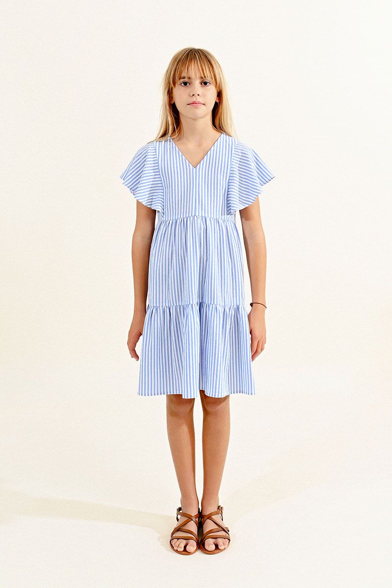 Flowy Woven Dress in Blue Ticking Stripe. Looks GREAT with sandals or sneakers!