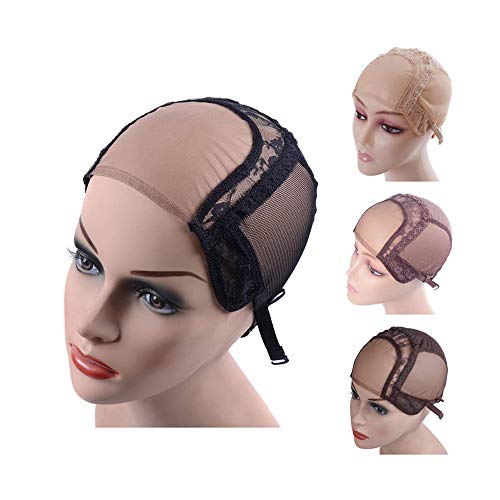 YANTAISIYU 4X4 Inch U Part Swiss Lace Wig Cap for Making Wigs with Adjustable Straps on the Back Glueless Hairnets (Black M)